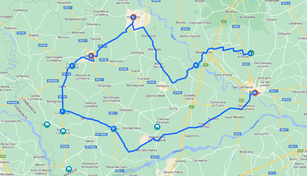 Questo tour abbastanza breve ci porta in un area geografica molto importante per le coltivazioni di riso, la natura e la cultura. Migliaia di campi agricoli coltivati e risaie, piccoli paesi e borghi che si sviluppano in un area pianeggiante che offre possibilità di escursioni in bicicletta o a piedi. Non è difficile trovare, tra un campo e l’altro, imponenti casali ancora abitati e non deve sorprendere il fatto che, in questa zona, esistono alcuni castelli ancora visitabili che raccontano una storia che si perde nei secoli fatta di antiche famiglie nobiliari. Da qui il nome di Piccola Loira, nota regione di castelli in Francia. L’itinerario è percorribile in entrambi i sensi, durante tutto l’anno, prediligendo la stagione primaverile per il clima ed evitando le nebbie, seppur suggestive, dell’inverno.