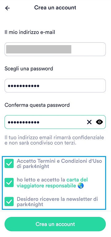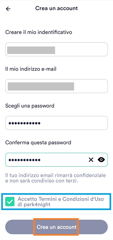 Il primo passo da fare, dopo aver scaricato e installato l’applicazione, è creare un account personale. La creazione dell’account è gratuita e il produttore dell’app certifica il trattamento dei nostri dati come prevedono le norme di sicurezza in materia di protezione della privacy.