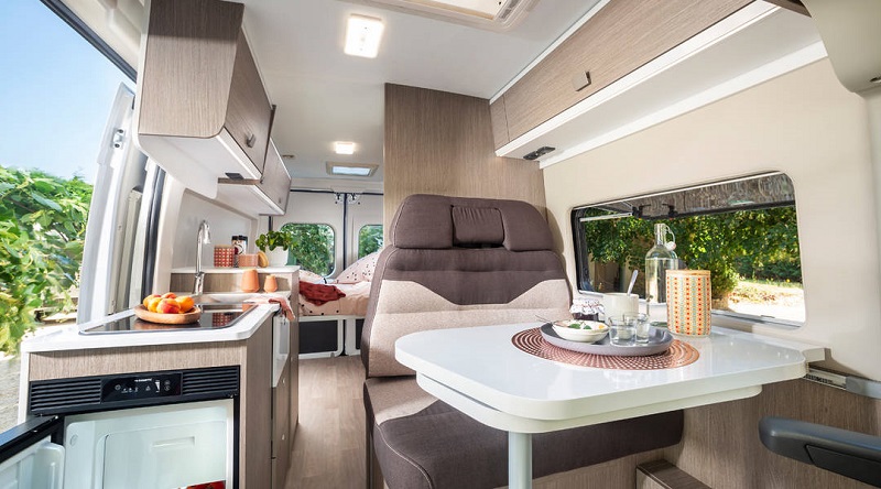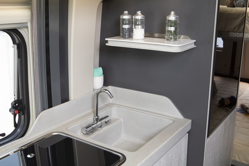 All’insegna del non plus ultra, il modello Livingstone Advance 2, cambia arredamento e dotazioni di bordo elevando ancora di più lo standard del marchio. Il piano di lavoro del blocco cucina simula perfettamente un materiale roccioso e integra il lavello, questa volta però con una meno pregiata rubinetteria abbattibile. Si aggiunge anche la colonna frigo che integra nella parte inferiore l’armadio guardaroba e si ottiene un utile mensola per piccoli oggetti da cucina.