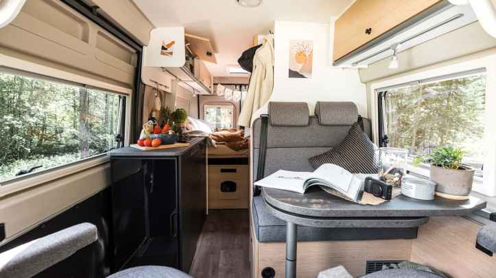 Tutte le finestre sono dotate di oscuranti e zanzariera e sono presenti nei due portelloni posteriori, sul portellone scorrevole e in dinette. Due gli oblò presenti: uno posteriore da 40 cm x 40 cm e uno anteriore da 50 cm x 70 cm (in pacchetto, altrimenti è come quello posteriore). La zanzariera e il gradino elettrico completano la dotazione dell’area di ingresso, sul portellone scorrevole. Nel corridoio, in zona armadio, sono disponibili due prese USB per la ricarica dei dispositivi, installate in un pratico vano a giorno che funge da mensola o svuota tasche. Al di sopra sono installati due ganci fissi appendiabiti. Il vano bombole può ospitare due unità da 11 kg, la stufa Truma Combi è da 4 kc a Gas e l’unico upgrade previsto è per la Truma Combi 6E che include il pannello CP Plus al prezzo di 590,00 Euro. Opzionale il riscaldamento e l’isolamento del serbatoio di raccolta delle acque grigie. Il serbatoio delle acque chiare è da 100 Lt, mentre quello di recupero è da 90 Lt. In totale ci sono 3 prese da 230 V, e le 2 prese USB. Il pacchetto citato nell’articolo è denominato Pacchetto Base, costa 965,00 Euro e include: Oblò in zona dinette da 50×70, Dotazione completa per il bagno (doccetta estraibile, tenda da doccia, binario guida per la tenda, supporto per la doccetta), Finestra in bagno, Barra appendi abiti in bagno, Gradino elettrico di ingresso, Estensione del tavolo in dinette, Predisposizione cavi per retrocamera.