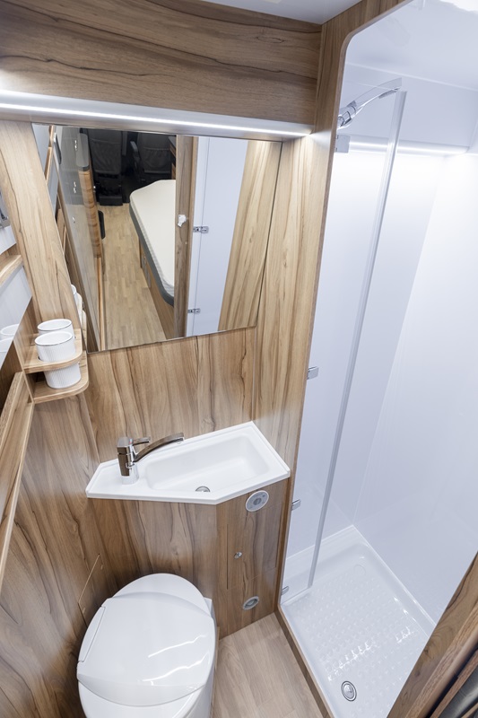 Il letto alla francese è ben posizionato in senso longitudinale sulla pianta abitativa ed è dotato di piano estraibile per incrementare la larghezza (138 cm in larghezza e 190 cm in lunghezza) e donare il massimo comfort per la coppia. Di giorno, quando non è necessario, il letto riduce il suo ingombro e permette di ricavare un ampio spazio vitale per potersi prepare. L’accesso alle armadiature è immediato e con l’eccellente illuminazione di bordo, tutto è a portata di mano.
