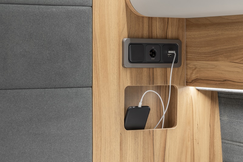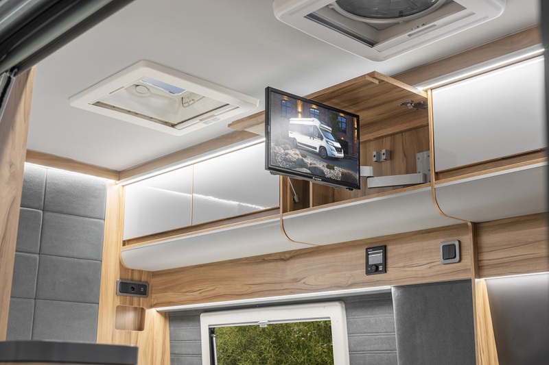 Affinity non ha tralasciato proprio nulla nella progettazione e nella costruzione di questo van, mostrando il meglio che un team possa fare per incontrare le esigenze del target cui è destinato un mezzo di questo tipo. Soluzioni come il vano di stivaggio per lo schermo TV, che scompare in un pensile e presele elettriche posizionate in punti strategici con relative nicchie a giorno porta accessori, sono elementi che confermano l’elevato standard qualitativo di questo van.