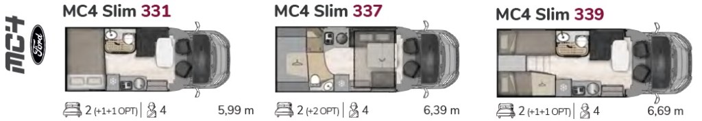 La gamma si articola sui modelli 331 da 599 cm, 337 da 639 cm e infine il 339 da 669 cm e tutti con passo da 3,30 metri. Ognuno con una pianta diversa per accogliere la clientela con preferenze diversificate per quanto concerne la zona notte. Infatti i cambiamenti si concentrano tutti in coda, mentre resta pressoché invariata la pianta nella zona centrale e anteriore. Tutti i modelli sono costruiti sulla base meccanica del Ford Transit con 130 Cv, anch’esso in versione 2025 che porta in dote un display multimediale di generose dimensioni e tutti i controlli ADAS di 2do livello.