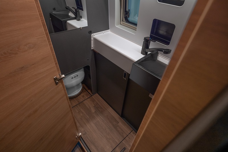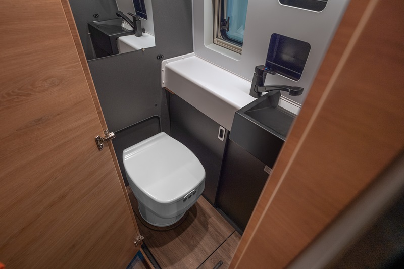 Due caratteristiche importanti per la versione 2025: l’adozione del wc CLEANFLEX – ne abbiamo parlato in questo articolo – e il tavolo della dinette ancorato alla parete laterale. Eliminare la gamba d’appoggio permette di guadagnare un maggior comfort durante la seduta e l’alzata degli occupanti.