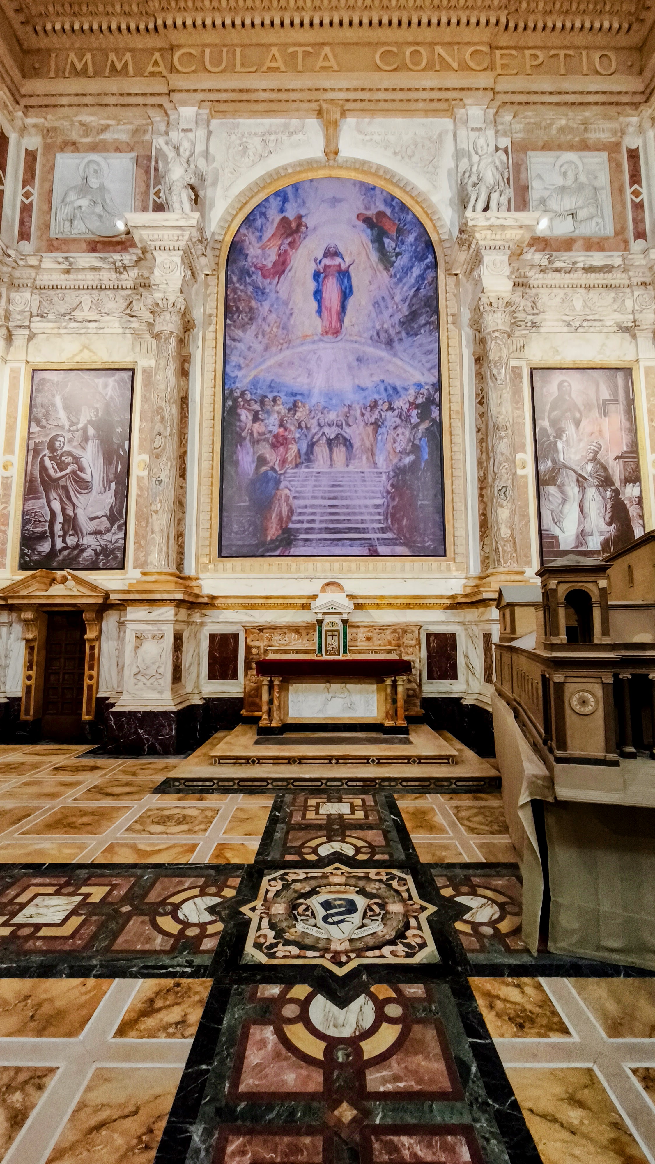 Dall’area sosta camper, l’ingresso del santuario dista poche centinaia di metri, ma trovandoci nella parte alta, è possibile iniziare la visita dalla Basilica Superiore. La costruzione di questa basilica nasce dall’esigenza di accogliere un numero sempre maggiore di pellegrini e devoti della Vergine Bruna. La posa della prima pietra risale al 1885 mentre la costruzione fu terminata nel 1960 donando a tutti i visitatori lo spettacolo della cupola alta oltre 80 metri. Proprio lei fa da tetto a uno spazio ottagonale dove trovano spazio sei cappellette tra le colonne che sorreggono la cupola e un altare maggiore. Nelle sale laterali è possibile vedere un importante collezione di presepi provenienti da tutto il mondo..