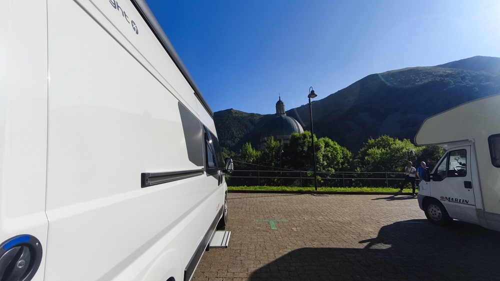 Giunti a Biella si trovano i cartelli che indicano Santuario di Oropa ed è impossibile sbagliare strada perchè non esistono alternative. Un occhio di attenzione al navigatore o all’app di navigazione per evitare un percorso, a volte suggerito, che passa al limitare del centro storico di Biella: probabilmente non è il più indicato per i veicoli più grandi. L’area sosta camper che affaccia direttamente sulla cupola del santuario, non è prenotabile. Puoi impostare la destinazione seguendo questo link oppure inserendo l’indirizzo: Piazzale Funivie, 13900 – Oropa, Biella.